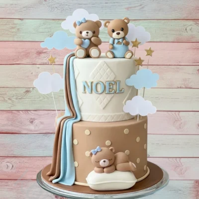 kr269,00 inkl. MVABamse kaketopper sett – 3stk – lyseblå