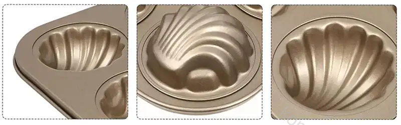Dette brett med skallformer i elegant gull er perfekt for å lage vakre, stablende kaker til enhver småkaker!