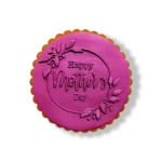 Designet er satt på et 80 mm rundt akrylstempel, noe som gjør det perfekt for formede kaker, cupcakes og andre godbiter.