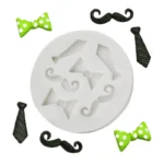 Legg til litt ekstra sjarm på kakene dine med denne søte silikonformen som inkluderer en sløyfe, slips og bart! Perfekt for å dekorere alt fra bursdagskaker til cupcakes og cookies.