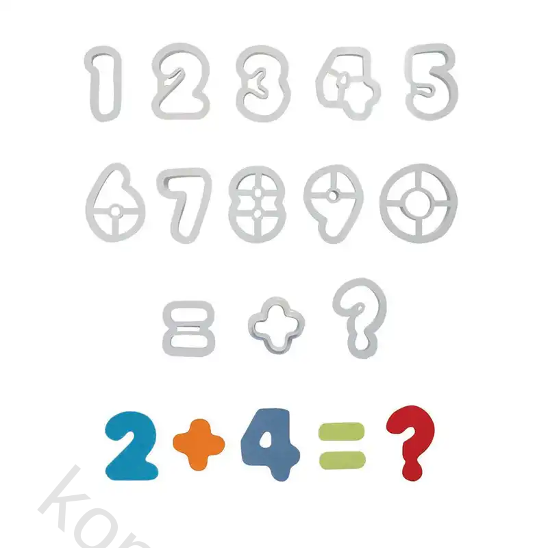 Settet inneholder tallene fra 0 til 9 samt symbolene pluss, likhetstegn og spørsmålstegn. Hver form har en høyde på 50 mm og en dybde på 13 mm, perfekt for store, synlige detaljer på kaken.