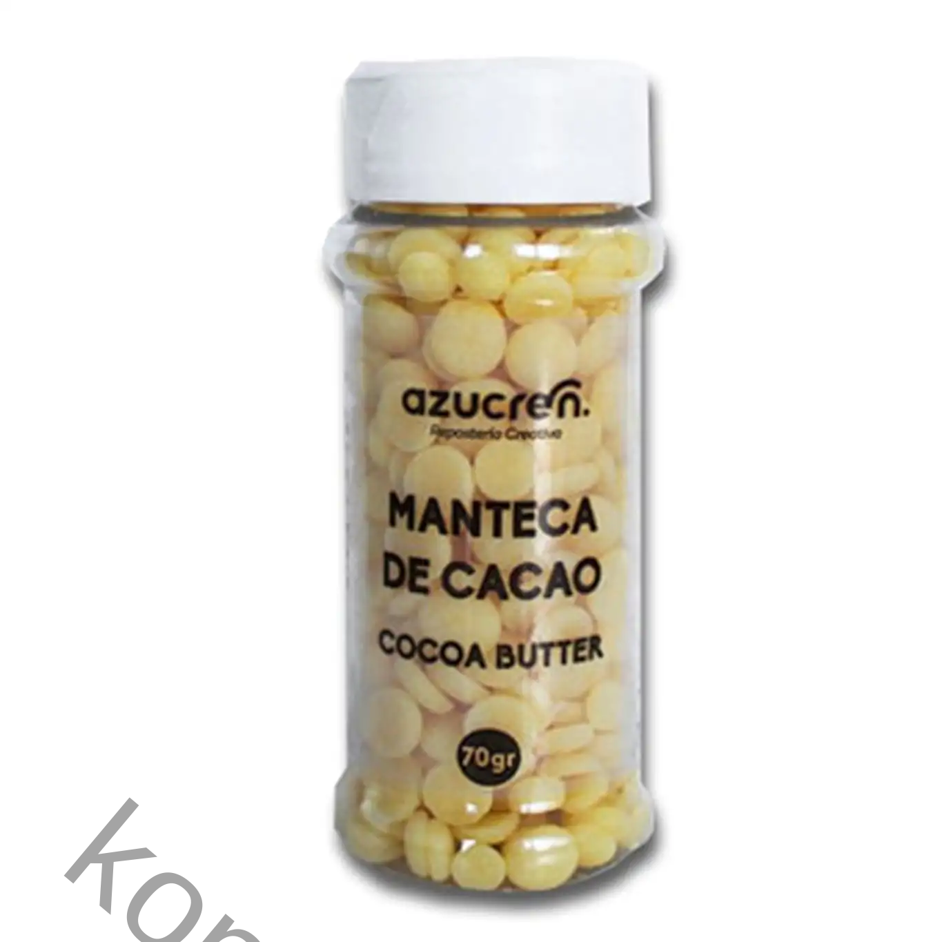 Azucren Kakaosmør 70 g er et rent og naturlig produkt som brukes mye innen konfekt, sjokolade og baking. Med 100 % kakaosmør får du et stabilt fettstoff som gir glans, elastisitet og en jevn tekstur i sjokolade og glasurer.