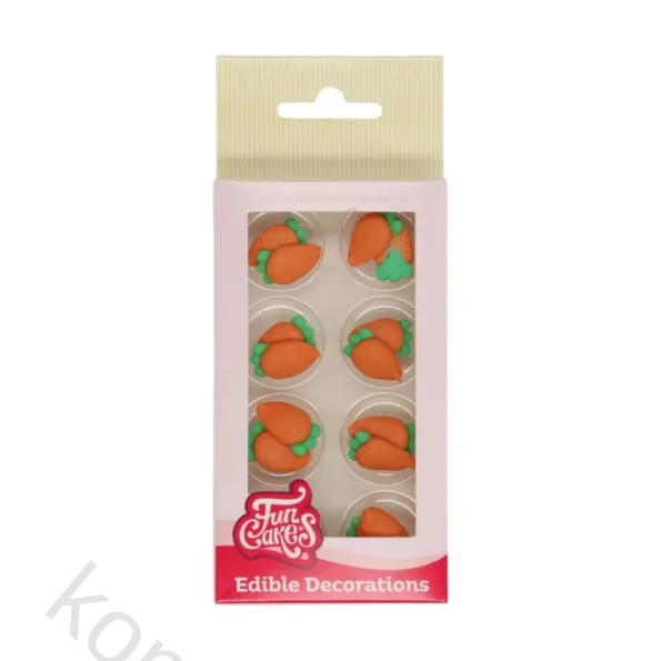 Ingen gulrotkake uten søte små gulrøtter! Disse herlige sukkerdekorasjonene fra FunCakes er perfekte til å pynte alt fra klassiske gulrotkaker til cupcakes, småkaker og desserter. De gir bakverket ditt et profesjonelt og sjarmerende uttrykk med et hint av farge og sødme.