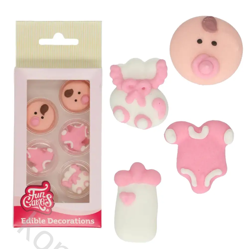 FunCakes Sugar Decorations Baby pink 12 stk – Spiselig Kakedekor til Baby Shower og Dåp
